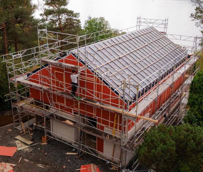Bygging underveis og nesten-ferdig